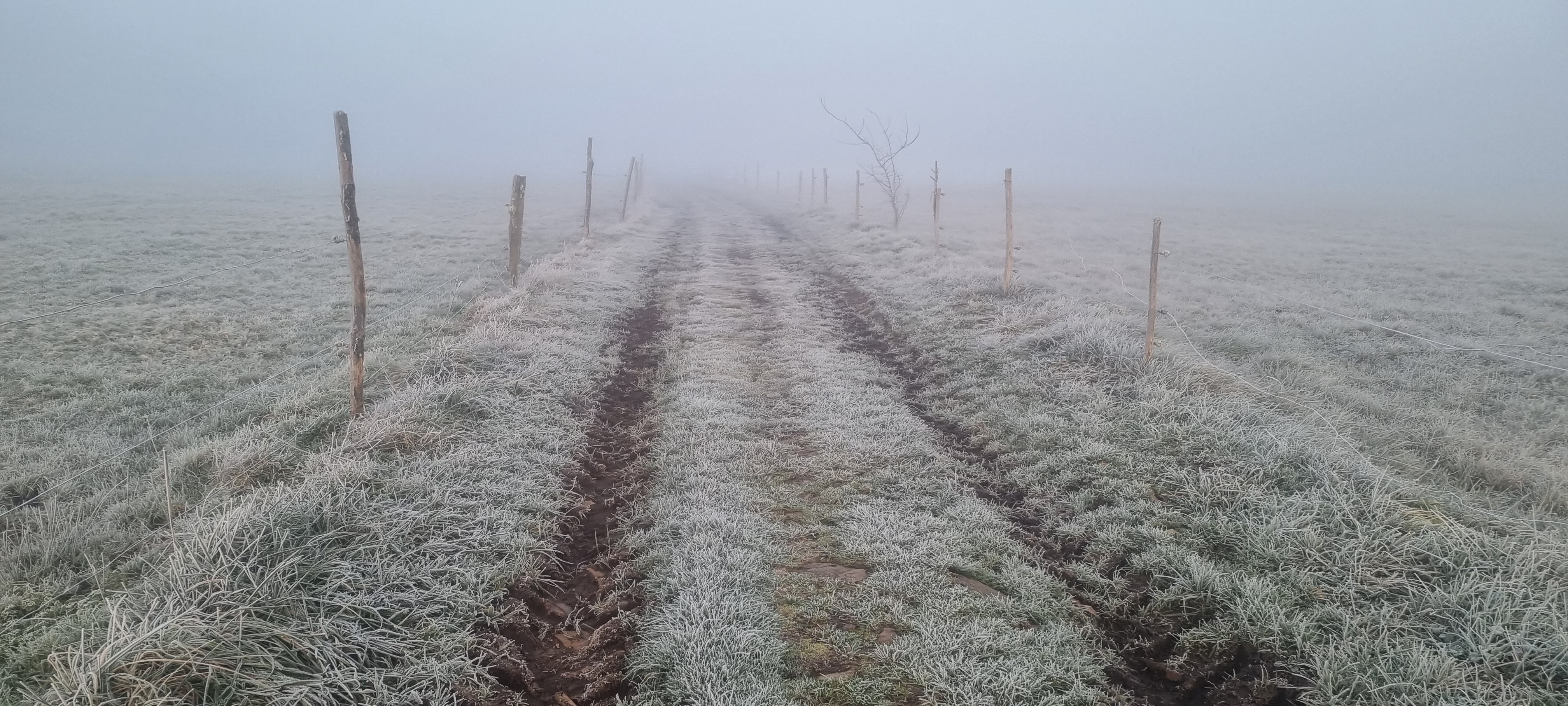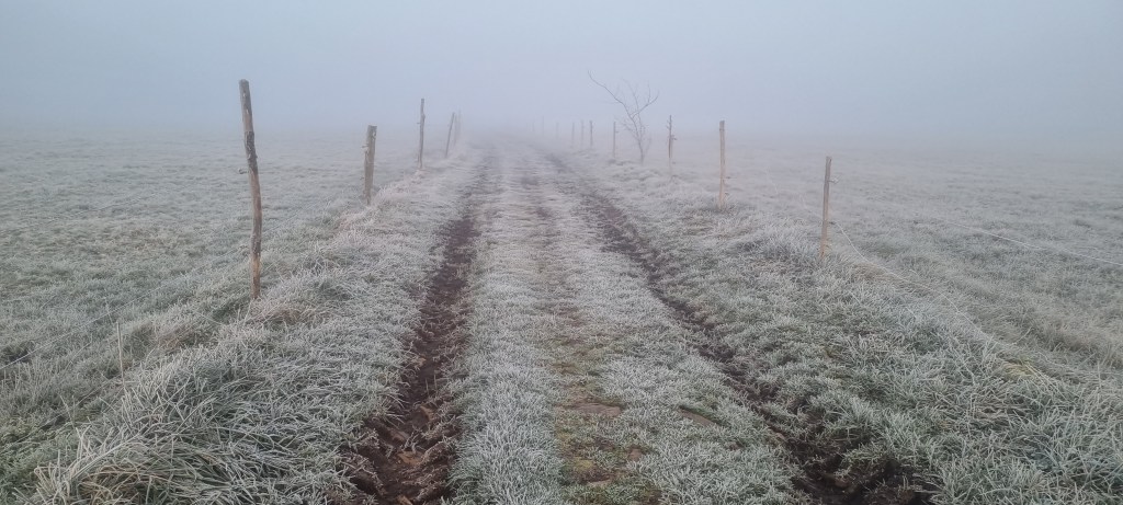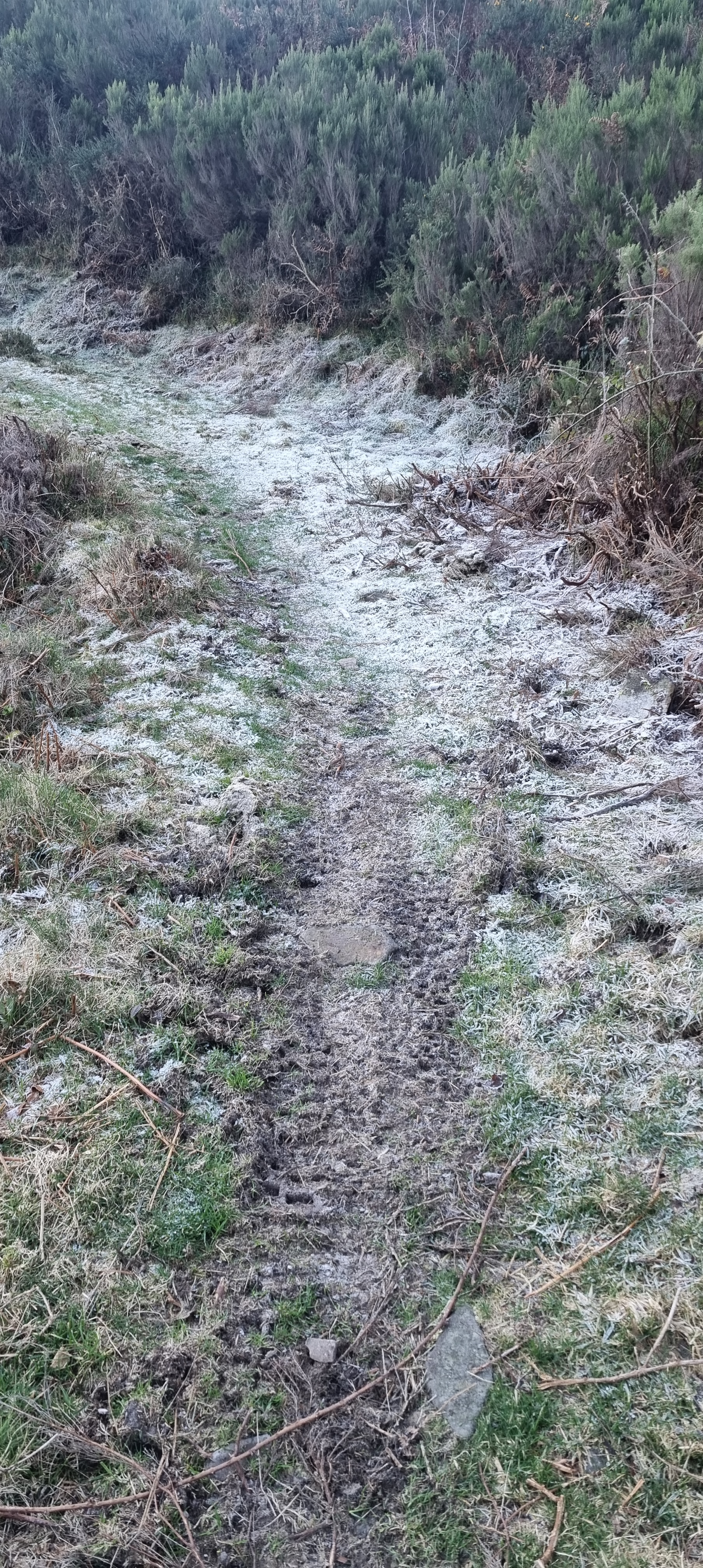 Quando iniciámos esta etapa era tanto gelo que é uma imagem simplesmente brutal, lindo e perigoso, tão perigoso que entre gelo, lama até ao tornozelo, silvas fui ao chão (a 1ª queda do camiño)😁.